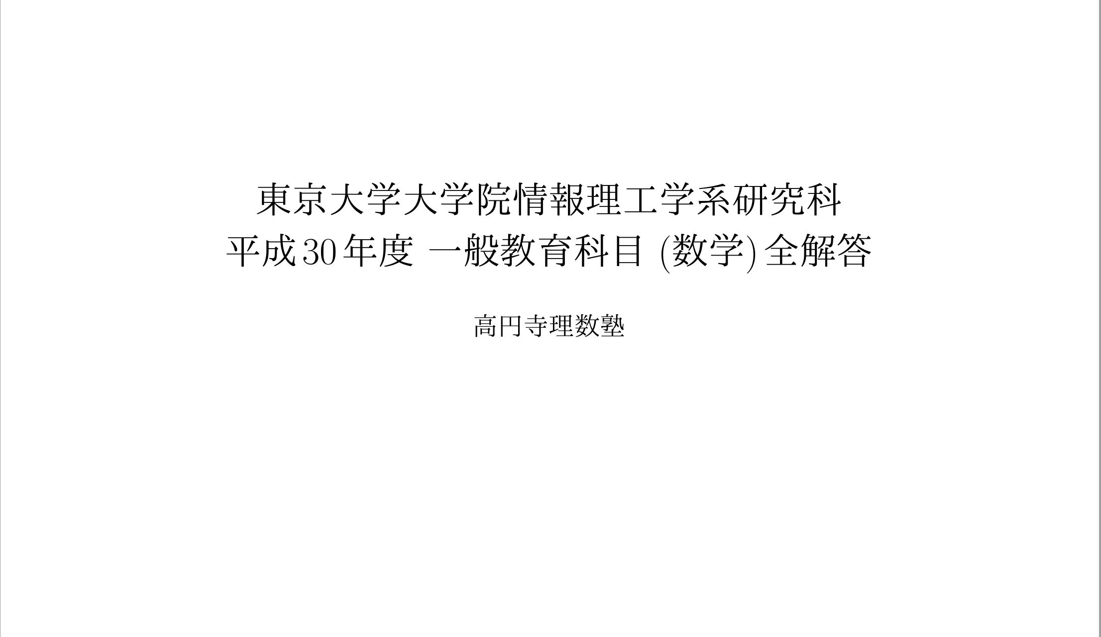 東京大学大学院情報理工学系研究科の平成30年度の一般教育科目(数学)の全解答になります。問題もついております。